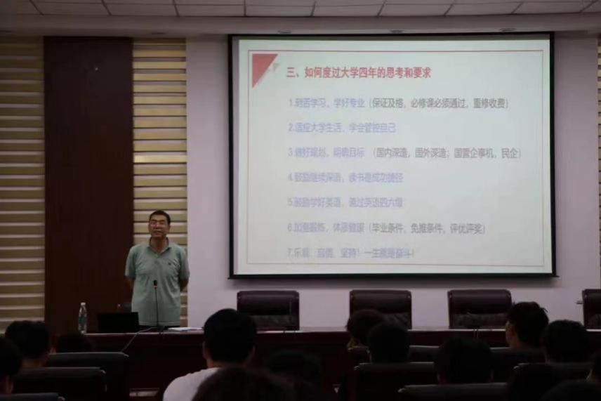 9月8日下午学院院长张光存为同学们进行了一场深刻而精彩的讲座。同时也向各位大一新生介绍了BEAT365官网的人才培养模式与BEAT365官网特色专业与特色优势。他勉励同学们要树立远大理想,厚植爱国情怀,练就过硬本领,不断彰显青春风采,贡献青春力量。