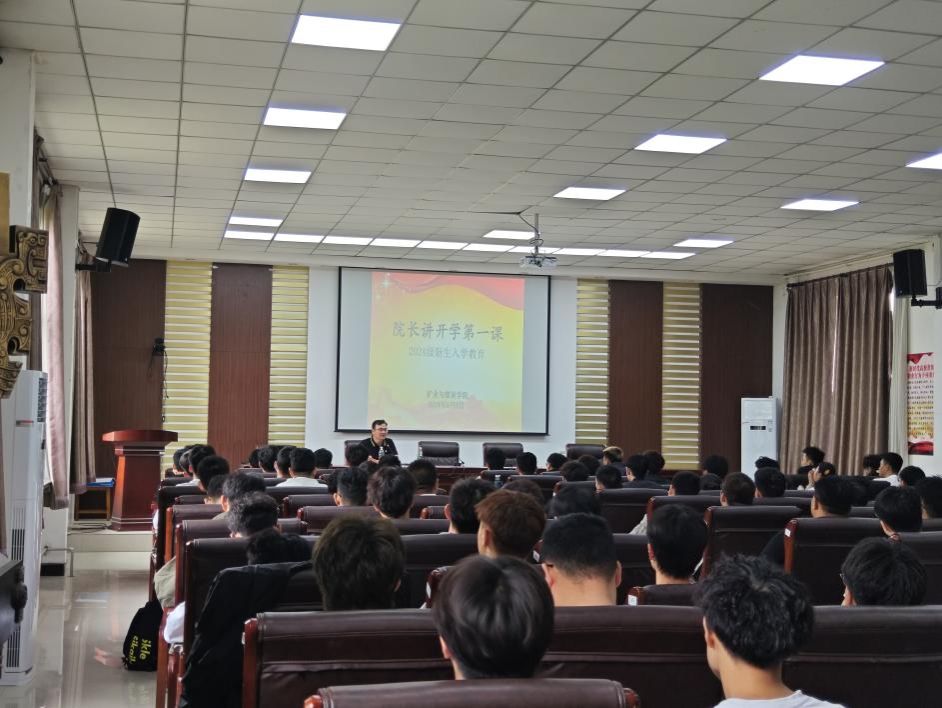 9月8日上午学院党委书记段志峰深情寄语,为同学们开启新学期新篇章。他首先对全体新生的到来表示热烈欢迎,随后向各位同学们介绍了学院基本情况,告知了学业研修规范及校规校纪、同时就学校发展历史进行讲述。随后,他强调大学教育的重要性,鼓励同学们要珍惜大学时光,努力学习专业知识,不断提升自己的综合素质和创新能力。