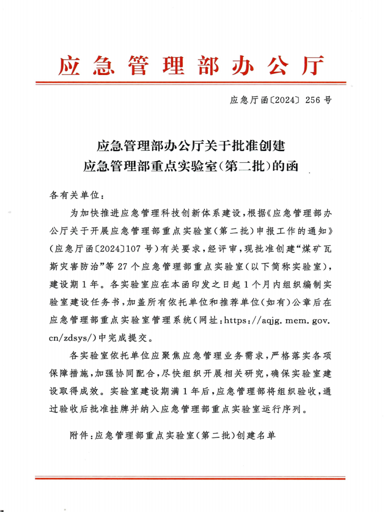 近日,应急管理部发文(应急函〔2024〕256号),批准创建27个应急管理部重点实验室。BEAT365英国官网作为依托参与单位获批“工贸行业安全风险防控联合创新应急管理部重点实验室”。我校将在本重点实验室建设中发挥工贸行业安全风险防控领域科研、学科、人才优势,推动安全应急领域产学研合作与产业链紧密结合的创新发展,为自治区安全与应急产业的可持续发展提供强有力的支撑。