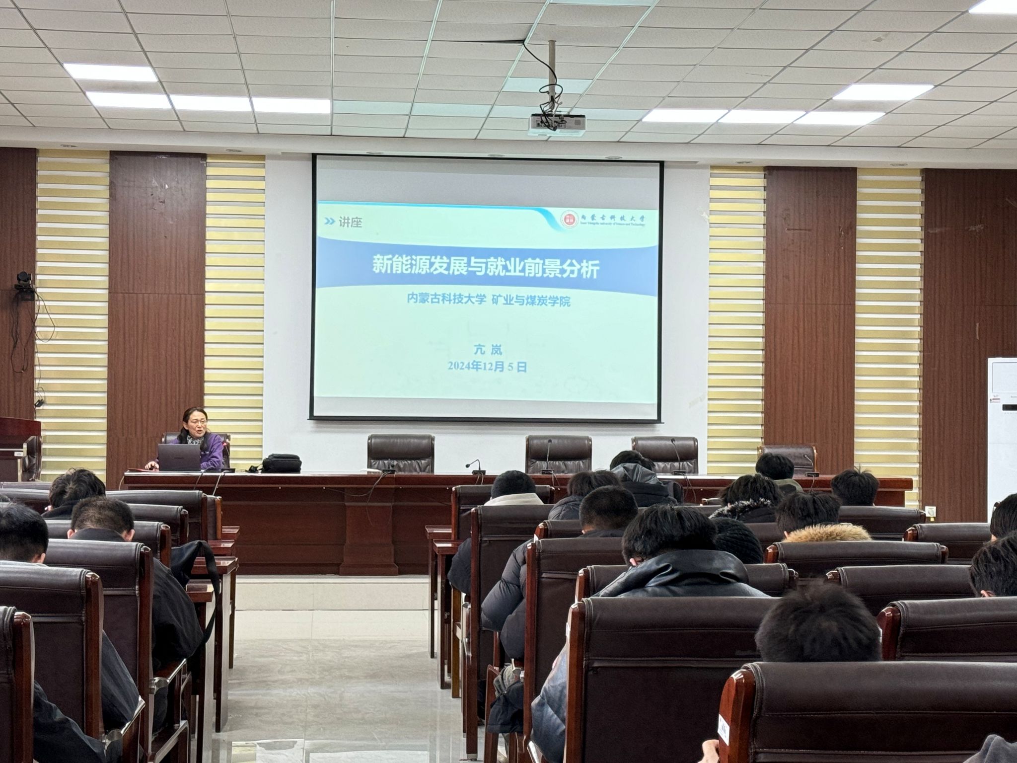 2024 年 12 月 5 日下午 16:00,BEAT365英国官网在实验室训楼二楼会议室举行讲座,机电工程系教授亢岚主讲,矿山机电专业三个年级及电气自动化、机电一体化专业毕业班学生踊跃参与,主题为“新能源发展与就业前景分析”。