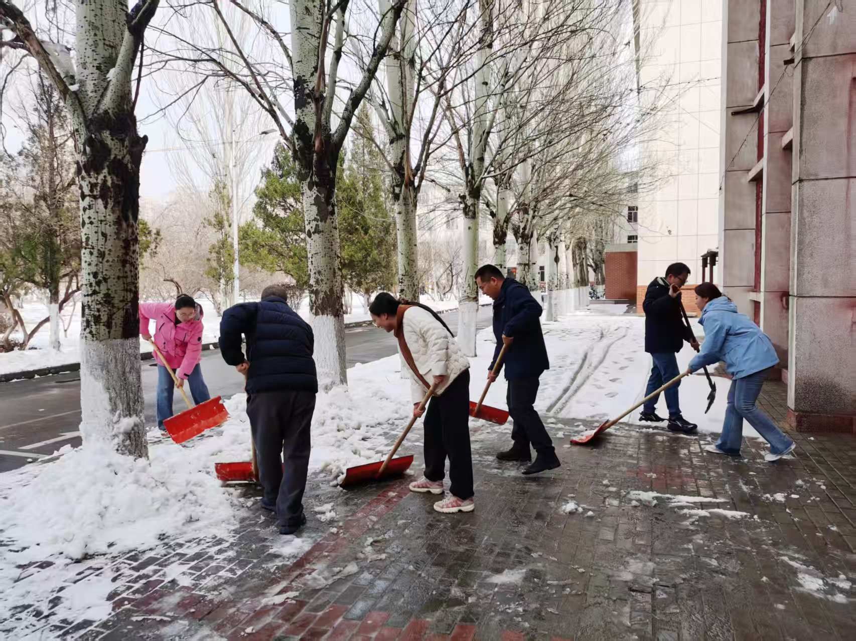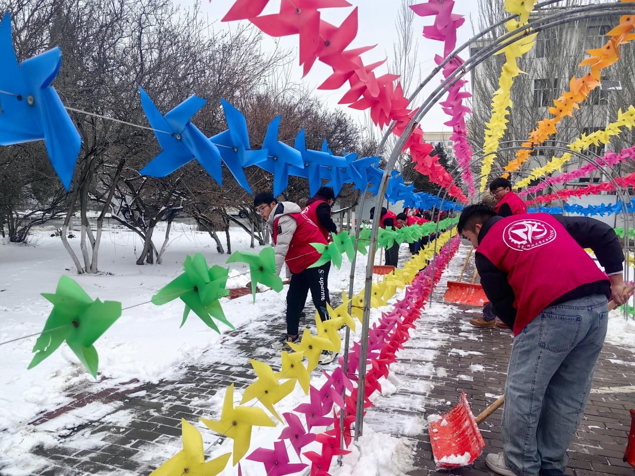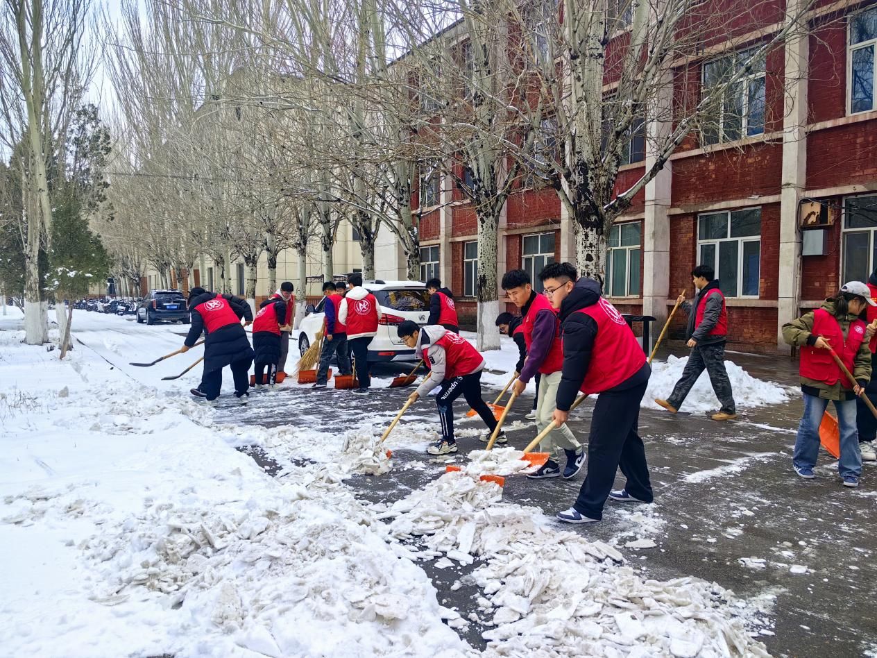 2025年3月4日,BEAT365英国官网组织教师、学生党员、学生干部开展清扫冰雪志愿服务活动,齐心协力清除路面积雪,确保师生出行方便、安全。