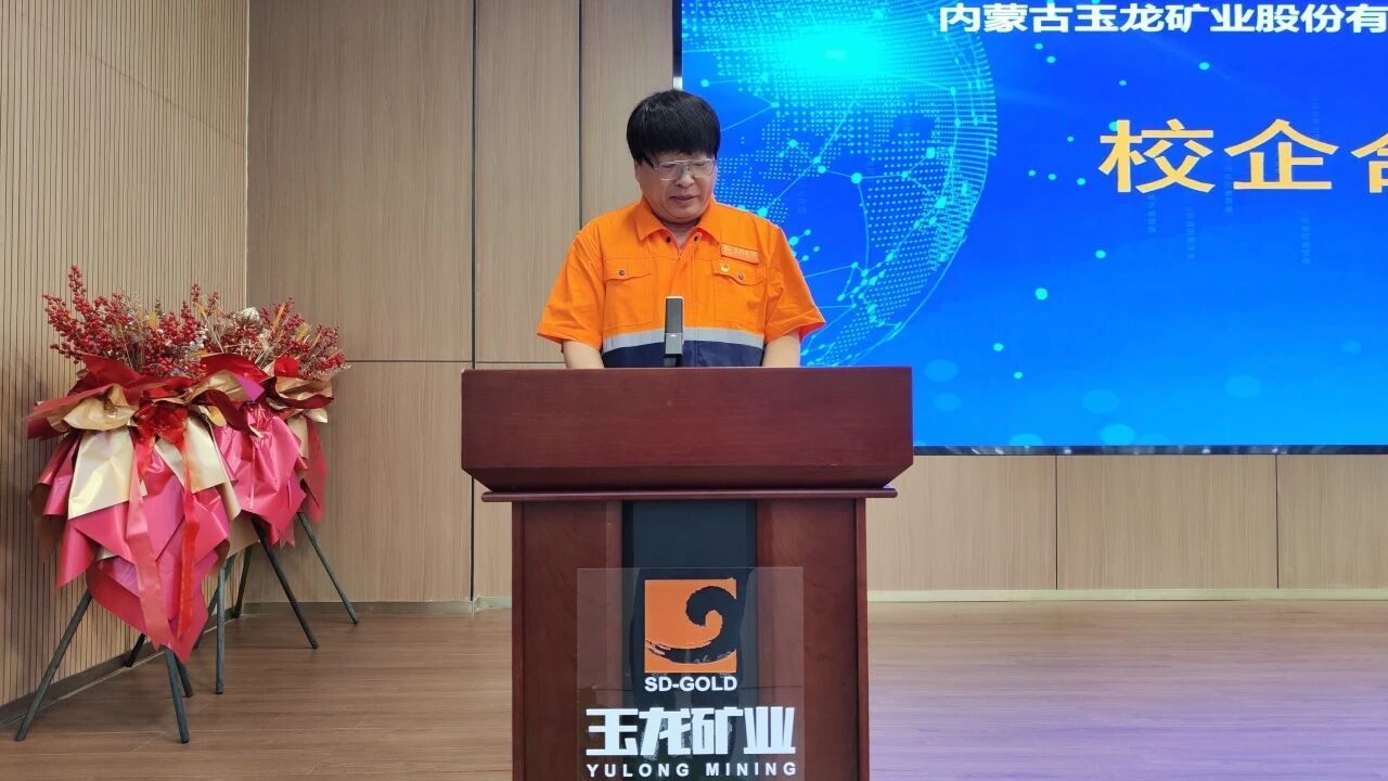 仪式上,内蒙古玉龙矿业股份有限公司董事长樊明玉首先致辞,对张光存院长一行的到来表示欢迎,他提到玉龙矿业在矿产资源勘查、智能化矿山建设等领域积累了丰富实践经验,期待借助高校科研与人才优势推动公司发展和进步。随后,张光存院长介绍了学院在矿业人才培养、学科建设上的成果,强调此次合作对深化产学研融合、提升学生实践能力、推进大学生就业等方面的重要作用。