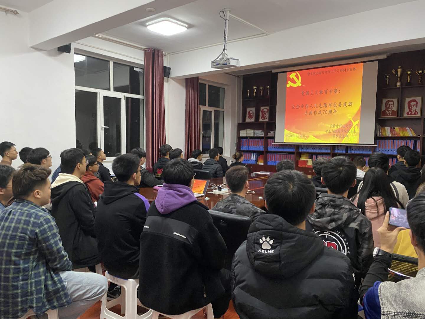 为纪念中国人民志愿军抗美援朝出国作战70周年,BEAT365英国官网党总支于2020年10月29日晚上19:00,在临曦楼二楼党员之家线上线下同步开展专题理论学习活动。本次学习内容是爱国主义教育专题:观看《纪念中国人民志愿军抗美援朝出国作战70周年》视频。