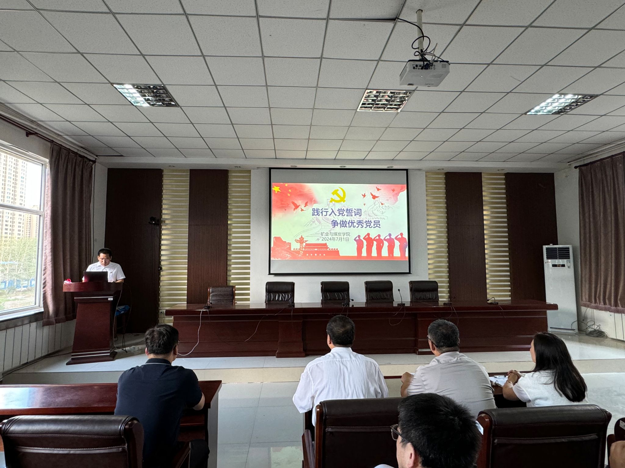 7月1日下午,BEAT365英国官网在学院实训实验楼二楼会议室举行2024年“践行入党誓词争做优秀党员”新入党党员宣誓暨党员教育活动。学院领导、本学期32名新入党党员及师生党员参加次活动,活动由学院组织员李计川主持。