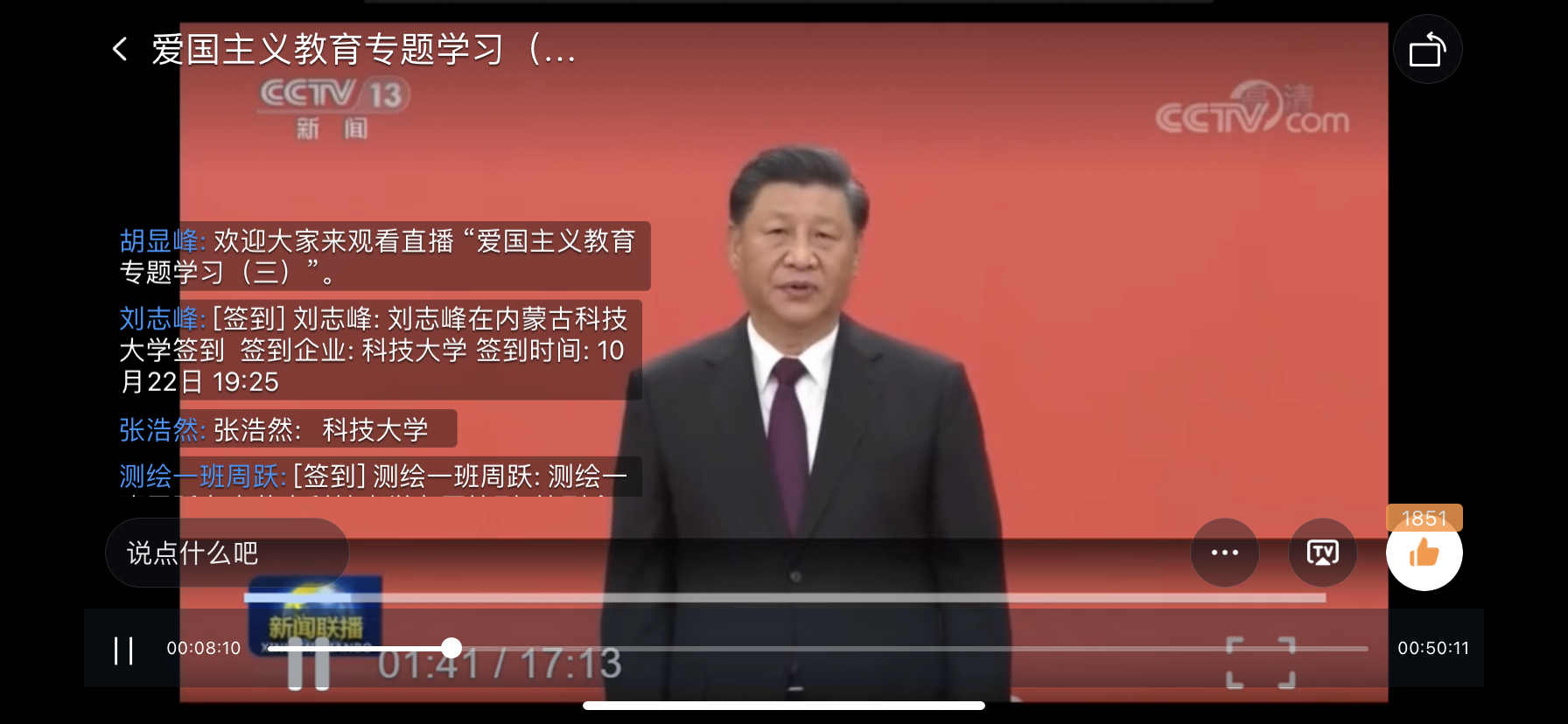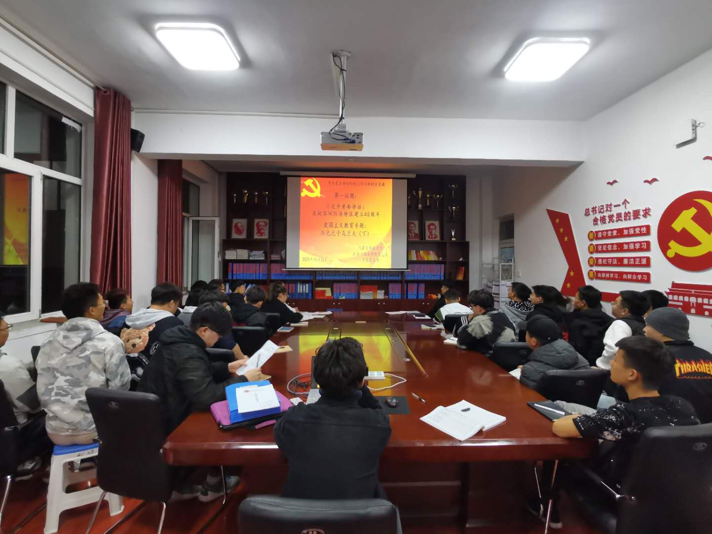 为提高大学生综合素质,矿业与煤炭学院党总支于2020年10月22日晚上19:30,在临曦楼二楼党员之家线上线下同步开展专题理论学习活动。第一议题:学习习近平在深圳经济特区建立40周年庆祝大会上重要讲话精神 ;爱国主义教育专题:观看《红色之子乌兰夫(下)》。