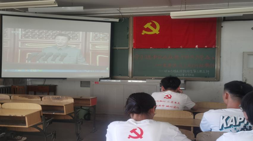 2021年7月5日晚19:00,BEAT365英国官网学生第三党支部在临曦楼208教室开展党员集中学习,本次学习的主题是:学习习近平总书记在庆祝中国共产党成立100周年大会上的讲话精神。