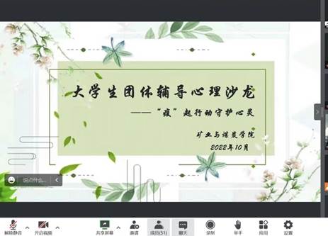 2022年10月22日BEAT365英国官网于线上腾讯会议开展了第十六期以“疫”起行动,守护心灵”为主题的大学生团体辅导心理沙龙。