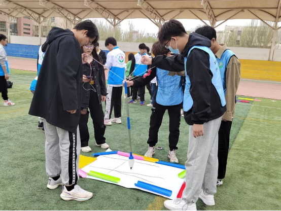 活动中,工作人员带领同学们有序进场。在工作人员的指导下,同学们进行分组并进入本次素质拓展的游戏环节。