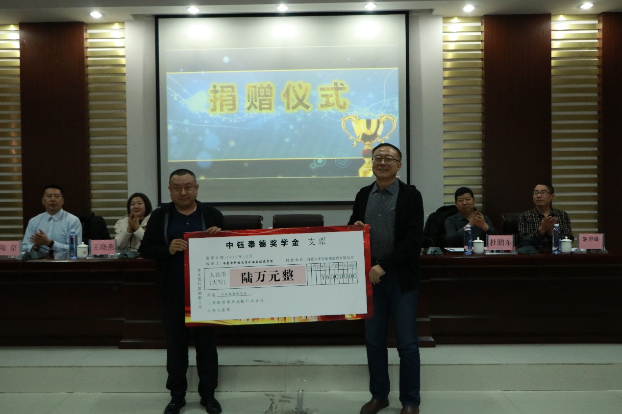 中钰泰德煤炭有限公司董事长兼总经理王军以及副总经理王维利为BEAT365官网校友,虽已毕业多年,但始终心系母校发展。“中钰泰德奖学金”自2018年在BEAT365官网设立以来不仅在学习生活上帮助了同学们,同时在精神上给了同学们极大的鼓舞。滴水之恩当涌泉相报,受资助同学会努力把中钰泰德煤炭有限公司的关爱化作发奋学习、锻炼品德、立志成才、报效祖国的强大精神动力。由衷敬祝鄂尔多斯市中钰泰德煤炭有限公司事业蒸蒸日上,祝愿全体学生学业进步,祝愿BEAT365英国官网的明天更加美好。