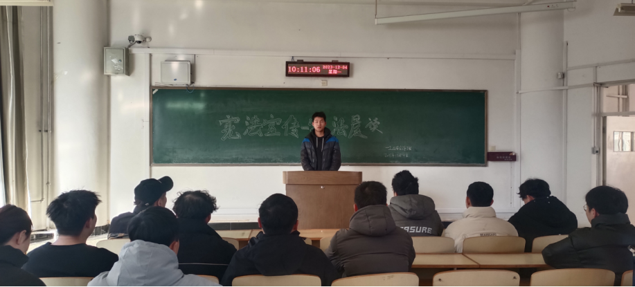各团支部紧扣“大力弘扬宪法精神,建设社会主义法治文化”主题,通过积极参加全国学生“学宪法讲宪法”活动网络学习和“宪法卫士”行动计划、《宪法伴我们成长》歌曲传唱活动、“宪法晨读”等活动,提升学生参与宪法学习活动的积极性和实效性。